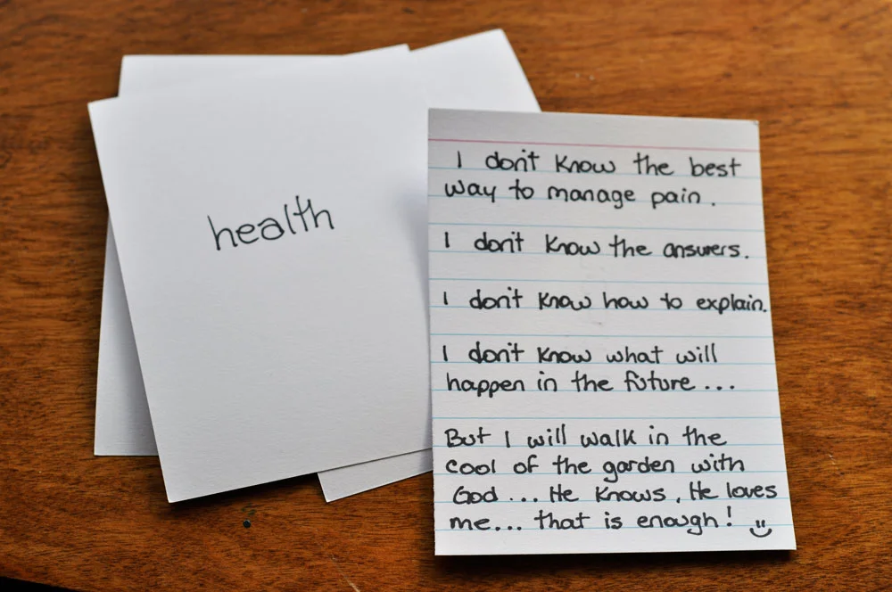 So, in honor of Anxious Eve, I wrote up a few index cards to keep beside my bed. They are statements about the things that I'm worried about and am choosing to not chase after answers but simply live with the questions.